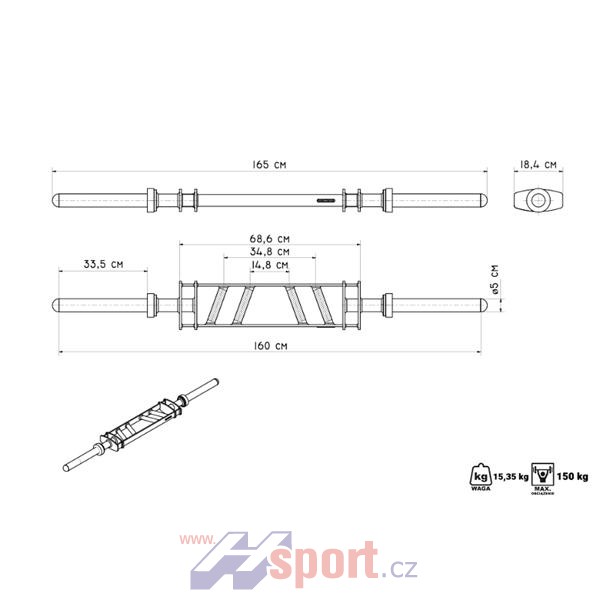 Obouruční olympijská osa s šikmými úchopy 165 cm