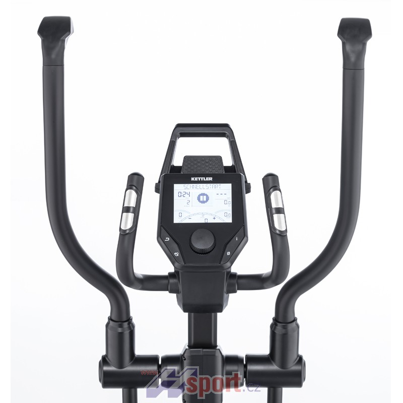Eliptický trenažér KETTLER RIVO 4, v moderním černém designu, je vybaven magnetickým brzdným systémem s 15 stupni zátěže, dokonalou ergonomií všech ovládacích prvků a vysoce kvalitním kloubovým spojením.