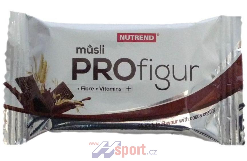 PROFIGUR MÜSLI polozalitá příchuť čokoláda v pravé tmavé čokoládě: glukózo-fruktózový sirup, tmavá čokoláda 18 % (kakaová hmota, cukr, kakaové máslo, kakao, emulgátor sójový lecitin a E 476, vanilkový extrakt), ovesné vločky, pražené arašídy, ovesný extrudát (ovesné vločky, rýžová mouka, pšeničná mouka, kukuřičná krupice, cukr, sladový výtažek, sladová mouka, sůl), kakaový extrudát (pšeničná krupice, pšeničná mouka celozrnná, cukr, kakao 4 %, sůl), rýžovo-pšeničný extrudát s kakaem (rýžová mouka, pšeničná mouka, kakao 6 %, cukr), pšeničné vločky, rostlinný tuk (palmojádrový, palmový, bambucký), akáciová guma, zvlhčující látka glycerin, emulgátor řepkový lecitin, kakao, přírodní aroma, vitaminový premix (kyselina L-askorbová, DL-α-tokoferylacetát, nikotinamid, D-pantotenát vápenatý, pyridoxin hydrochlorid, riboflavin, thiamin mononitrát, kyselina pteroylmonoglutamová, D-biotin, kyanokobalamin). Výrobek obsahuje alergeny arašídy, lepek, sóju. Může obsahovat stopy ořechů, sezamu a mléčné bílkoviny.