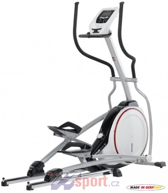 Sklopný, programovatelný crosstrenažér KETTLER-ELYX 5 s indukční brzdou a USB rozhraním pro připojení k PC reprezentuje novou řadu posilovacích strojů ELYX, která představuje nejmodernější eliptické trenažéry pro domácí a lehce komerční využití. Nový konstrukční návrh se setrvačníkem umístěným vepředu znamená změnu ergonomie pohybu nohou – nášlapy mají nyní mnohem menší rozestup, čímž se pohyb stává přirozenějším, a zároveň se tak výrazně prodlužuje krok. Dochází i ke změně dráhy nášlapu, průběh kroku přestává být plochý a pohyb je podobný výstupu do schodů. Tento unikátní klouzavý pohyb s výstupem pak umožňuje intenzivnější posilování dolních svalových partií. Robustní konstrukci s nadstandardní nosností (do 150 kg váhy) navíc ocení také osoby vyšší postavy (do 220 cm). Crosstrenažér ELYX 5 je německé výroby a tato tradice MADE in GERMANY již dlouhá léta reprezentuje špičkovou kvalitu a spolehlivost. Kvalitu provedení, funkční design a uživatelskou přívětivost nové generace crosstrenažérů ELYX dokládá mimo jiné i prestižní ocenění PLUS X AWARD v kategoriích „High Quality“, „Design“ a „Ease of Use“.