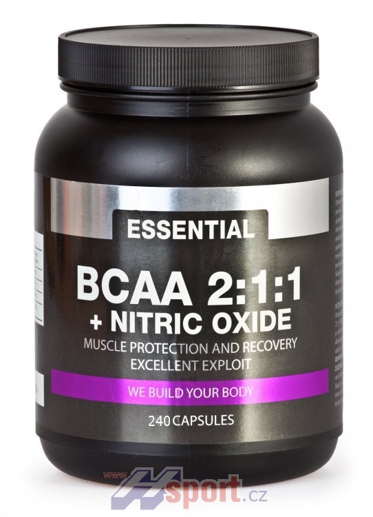 BCAA 2:1:1 + Nitric Oxide je výživový doplněk vhodný pro sportovce a při zvýšené tělesné zátěži. Směs esenciálních aminokyselin urychluje obnovení síly a regeneraci. L-Isoleucine regeneruje svalstvo při přetížení, ochraňuje ho před zraněním a podporuje jeho růst. L-Valine podporuje tvorbu tělesných bílkovin i regeneraci. L-Leucine přispívá k regeneraci a k celkové anabolizaci. Směs větvených aminokyselin BCAA v optimálním poměru regeneruje svalstvo, fyzickou sílu, brání poškození svalstva, snižuje pocit únavy, má antikatabolický účinek (chrání svalstvo před destrukcí) a podporuje mozkovou činnost. Důležitá součást výrobku je Arginin Alfaketoglutarát-Nitrix Oxide = pumpa pro svaly.