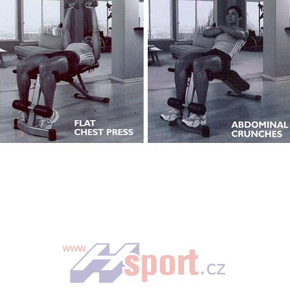 Polohovací lavice SB222 je určena pro domácí trénink s menšími a středními váhami. Na lavici lze provádět bezpočet cviků s jednoručními činkami, polohování opěry zad do mnoha poloh umožňuje provádět tyto cviky s vysokou přesností záběru. Negativní sklon lavice umožňuje provádění leh-sed na posílení břišního svalstva.