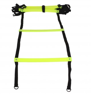 Agility žebřík pro sportovce, s délkou 9 m a šířkou 43 cm. Plastové příčky žebříku jsou napevno fixované v rozestupech po 38 centimetrech.