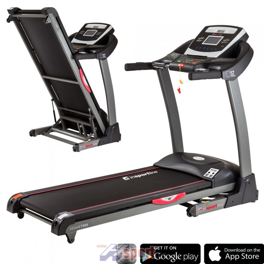 Běžecký pás inSPORTline inCondi T400i je kvalitní běžecký pás, určen pro domácí a klubové využití. Pás je vybaven bohatou funkční a bezpečnostní výbavou, mezi kterou patří propracovaný computer s podsvíceným LCD displejem, motor o maximálním výkonu 3,5 HP nebo 22 poloh nastavení sklonu. Stroj disponuje možností propojení s tabletem či iPadem skrze technologii Bluetooth a aplikaci iRunning+. Díky ní je možné si mimo jiné virtuálně zaběhat například v Alpách, světových metropolích a dalších zajímavých místech. Průběh trasy lze sledovat díky Google Maps a Street View přímo na displeji. Aplikace samozřejmě nabízí i nastavování funkcí stroje přímo z Vašeho tabletového zařízení.