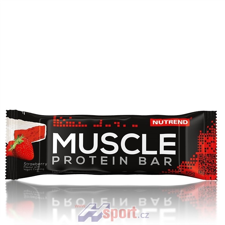 MUSCLE PROTEIN BAR -příchuť jahoda – škrobový sirup, jogurtová poleva (cukr, rostlinný tuk, sušená syrovátka, jogurtový prášek, emulgátor sójový lecitin, kyselina citronová, přírodně identické aroma jogurt), izolát sojových bílkovin, syrovátkový koncentrát, invertní sirup (cukr, voda, konzervant kyselina sorbová), sójové vločky, palmový tuk, vanilková náplň (cukr, směs ztužených rostlinných tuků a rostlinných olejů, sušená syrovátka, sušené mléko, emulgátor řepkový lecitin, aromatické látky, ethylvanilin, jedlá sůl, antioxidant tokoferol), kukuřično-bramborový extrudát (kukuřičná krupice, sušená bramborová kaše, cukr, vláknina), sacharóza, emulgátor řepkový lecitin, laurový tuk, zahušťovadlo guarová guma, přírodně identické aroma jahoda, multivitaminový premix (vitamíny E, B1, B6, B2, B12, B3, B5, H, C a kys. listová), konzervant kyselina sorbová.
