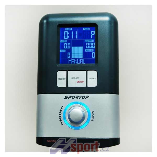 Ovládání stroje je elektronické, nastavení zátěže je zajištěno pomocí servoregulace. Brzdný systém nabízí celkem 16 stupňů zátěže a několik motivačních programů včetně režimu řízeného tepovou frekvencí – HRC, ergometr SPORTOP B800P měří zátěž i ve Wattech.