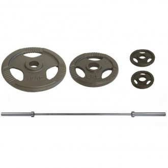 Kompletně sestavený činkový set s olympijskou osou a litinovými kotouči o celkové hmotnosti 230 kg. Nákupem tohoto setu ušetříte, jelikož ceny jsou zde nižší, než při koupi jednotlivých kotoučů a osy samostatně.