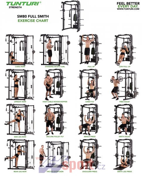 Tato posilovací věž má široké využití. Lze na ní provádět např. tyto cviky: