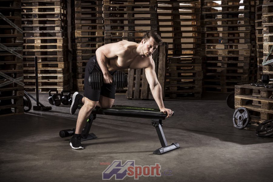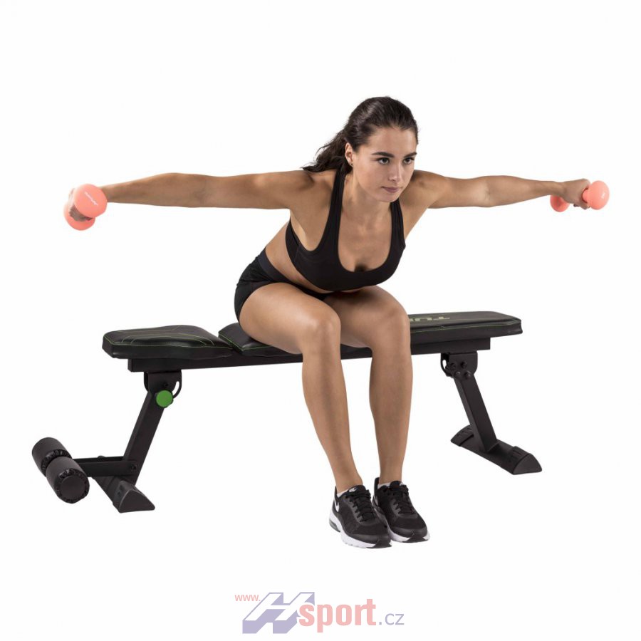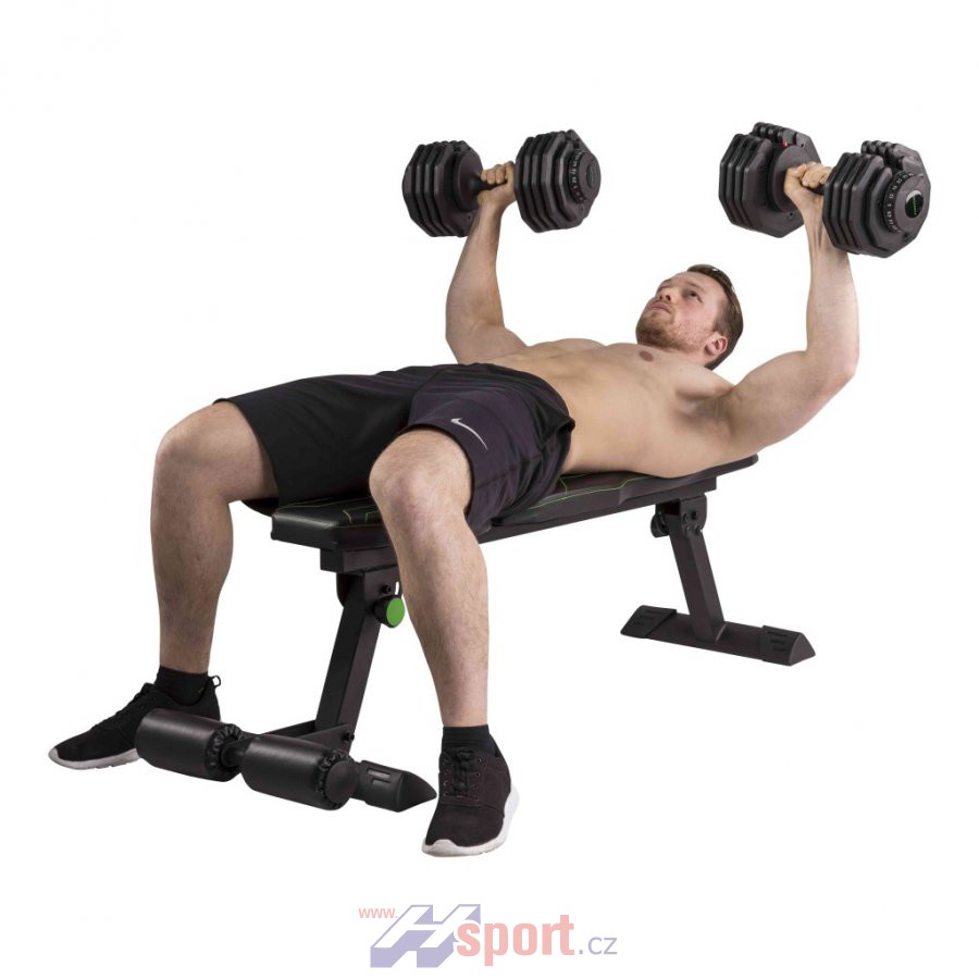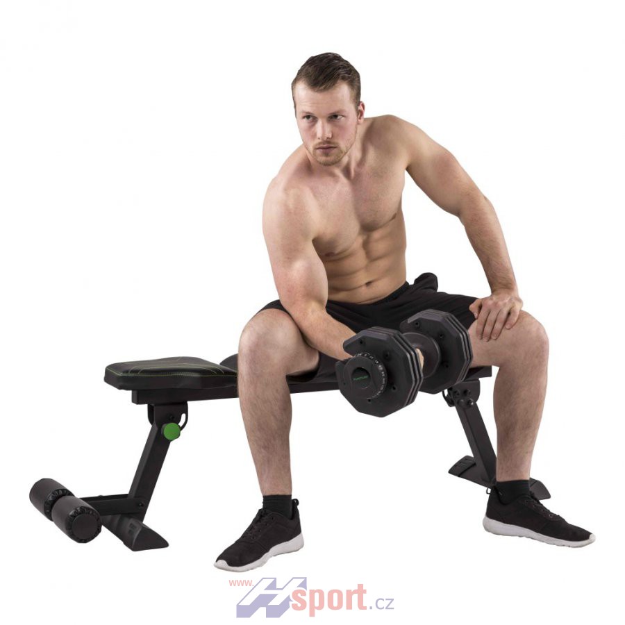 Lavice má možnost nastavení sklonu. Díky tomu lze odcvičit i cviky na sklopené lavici pro břišní svaly.