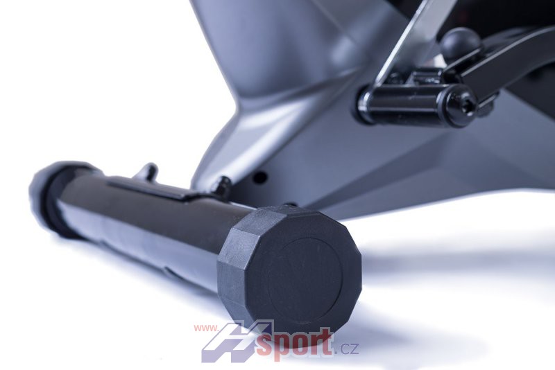 Crossový trenažer Motio 20 je vybaven tuhým rámem, setrvačníkem o hmotnosti 7 kg, převodový řemen je dopínaný kladkou, šlapací střed i střed setrvačníku jsou osazeny kuličkovými ložisky.